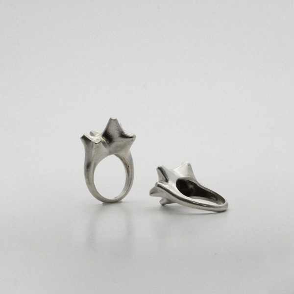 Conjunto que surge de la investigación sobre la tensión como principio estructural. Las formas iniciales evolucionan hacia volúmenes orgánicos que sugieren movimiento y transformación. Cada pieza representa una forma que parece estirarse y contraerse, como si tuviera vida.